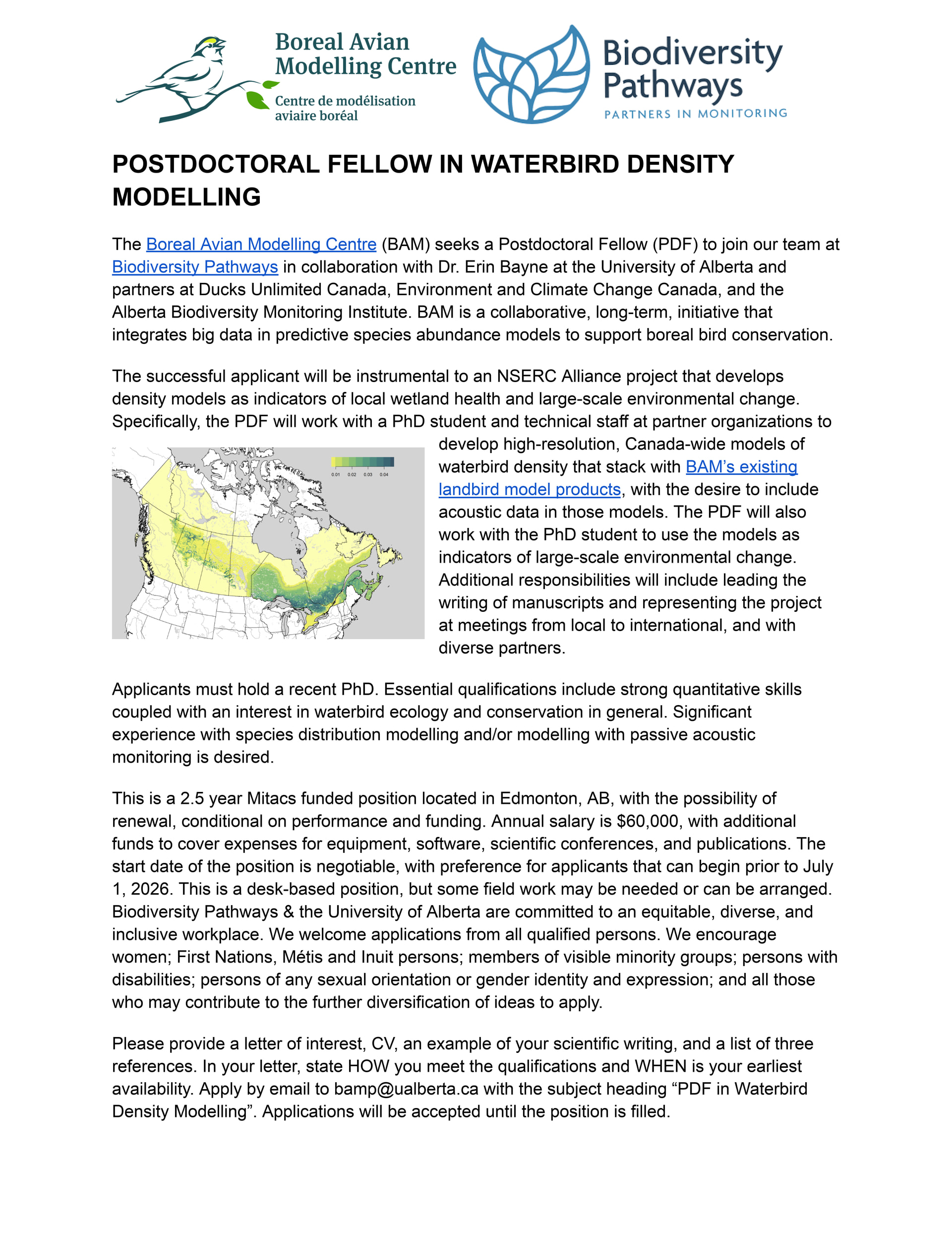 Postdoc Waterbirds BAM